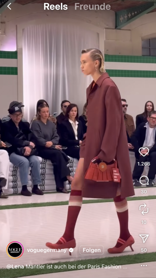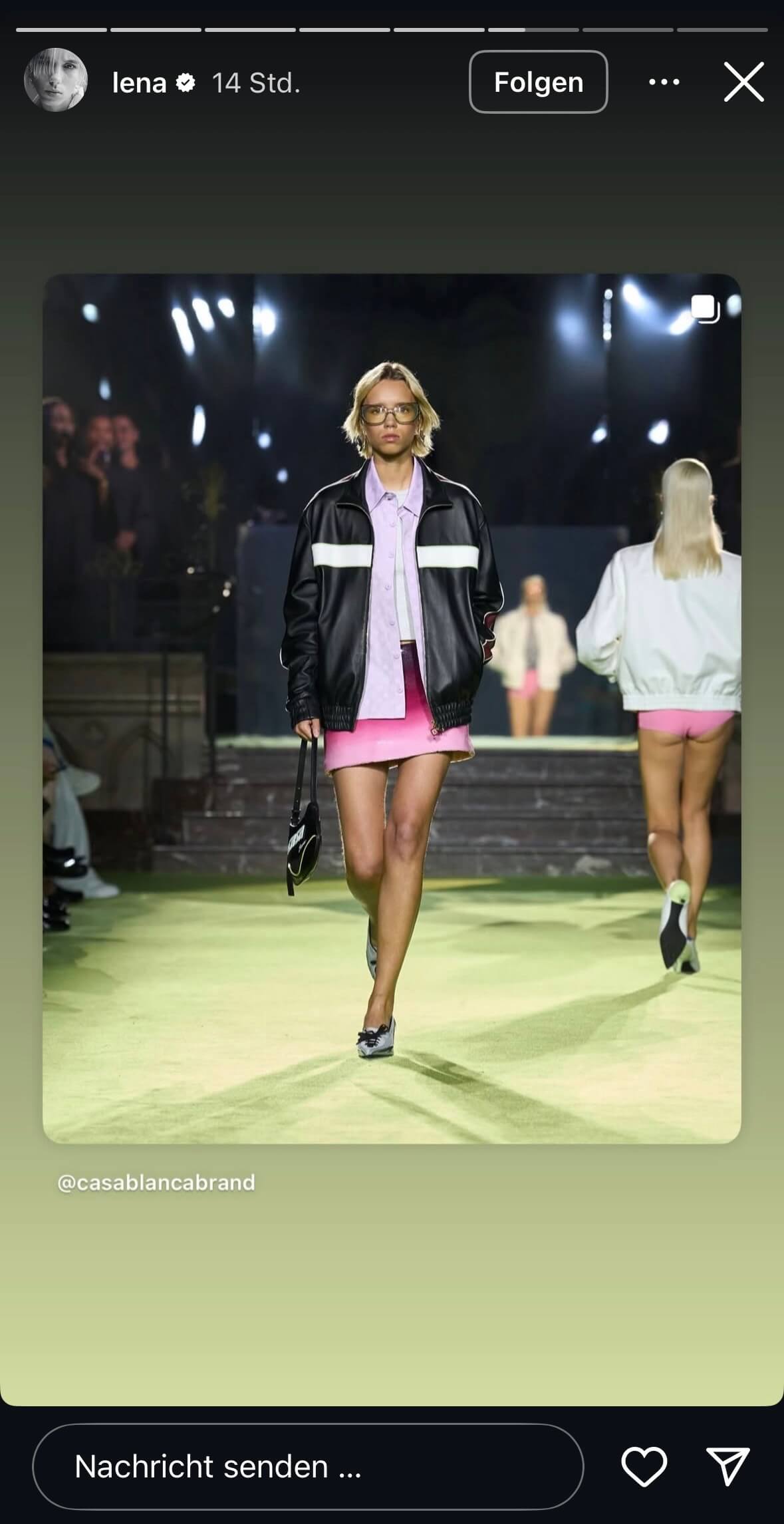 Und es geht munter weiter! Lena ist in Paris und läuft für ein weiteres Modelabel. Wieder das gleiche Spielchen wie immer – ein Repost der Modenschau-Bilder in ihre angeblich 20-Millionen-Story. Werbemarkierung fehlt!