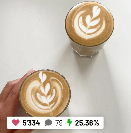 Bei Lisa gibt es wieder das Standardprogramm: Es beginnt mit einem Gratis-Paket von (noch nie dagewesenen) Abib Cosmetics, welches in der Story beworben und die Marke verlinkt wird. Weiter gehts mit der gesponserten Kaffeemaschine und dem Repost des Reel zum Launch ihrer Kaffeebohnen Karriere … dann werden wieder die gesponserten Kaffeebecher gezeigt. Gähn …! Das Ergebnis bis jetzt nach zahlreichen Reposts auf alles 3 Collab-Accounts sind 3200 Likes und 44 Kommentare, wovon die Hälfte von Lisa selbst stammt!