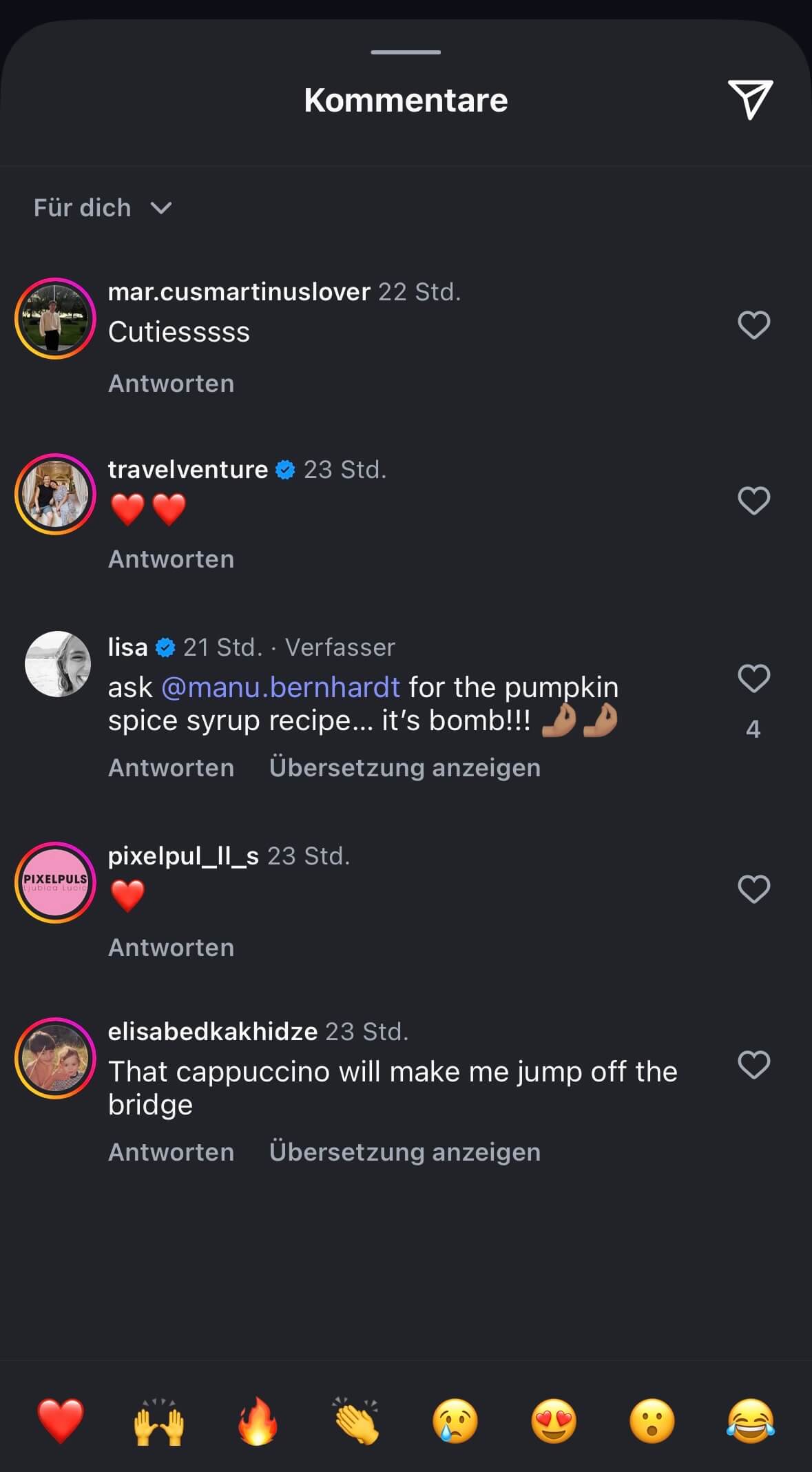 Am Ende der Woche auch noch ein kurzer Blick auf Lisa´s neues Kaffeebohnen-Buisness. Wie üblich bleiben ihre angeblichen 620.000 Follower der Sache fern, genauso auch wie die 20.000 ihres Hubbys. Die Bilanz sind jedenfalls 5300 Likes und 79 Kommentare als Feedback für den Launch der Woche. Man muss nicht erwähnen, dass über die Hälfte der Kommies von Lisa und ihrer Kumpane selbst stammen … ihr wisst es längst!