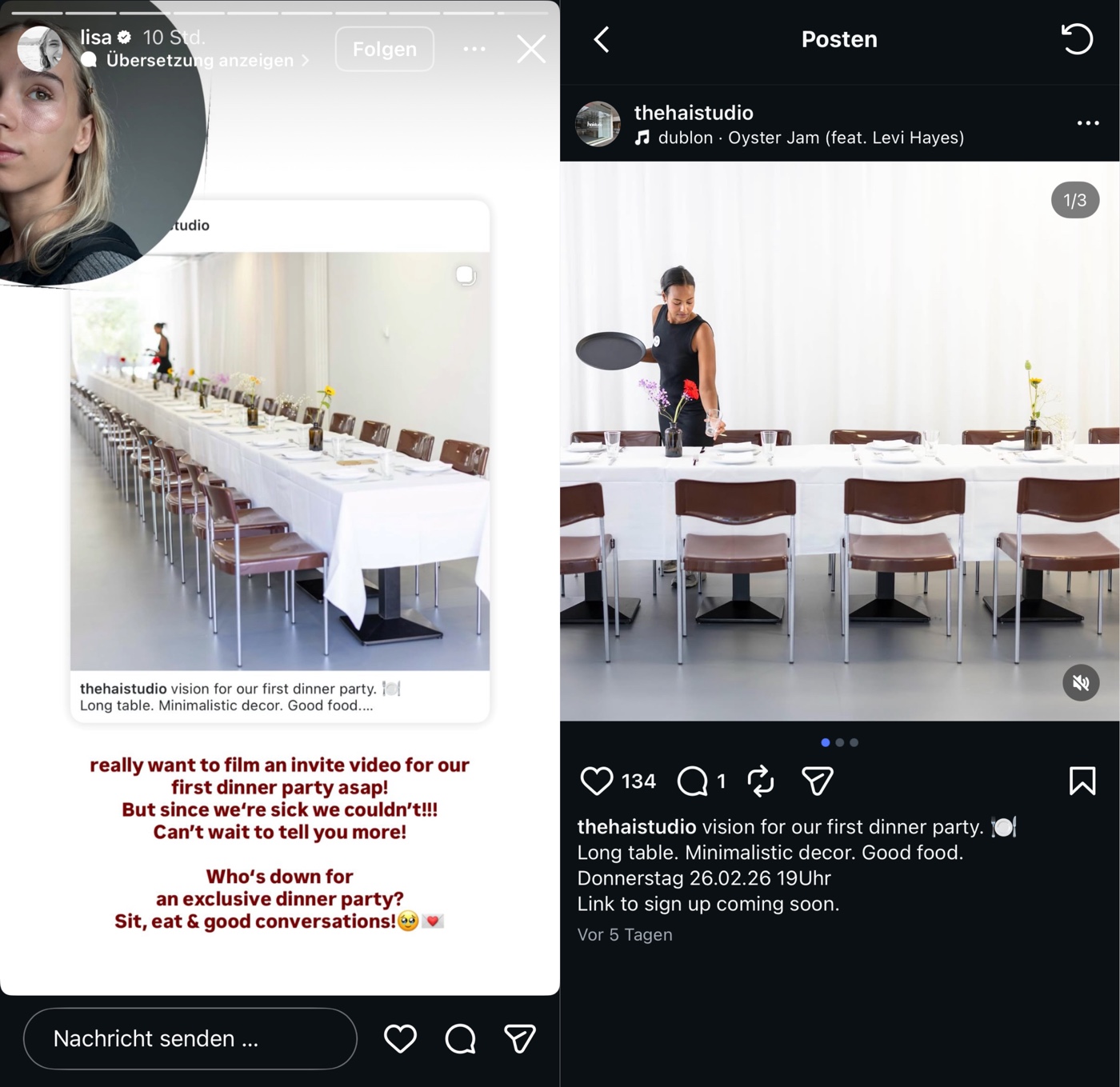 Das ist dann aber selbstverständlich auch noch nicht alles an Werbung heute. Lisa teilt noch ein paar Storys aus ihrem Büro-Vermietungs-Business … da gibt es wieder ein Event … also postet sie erneut unmarkierte Schleichwerbung dafür. Reel gibts selbstredend auch!