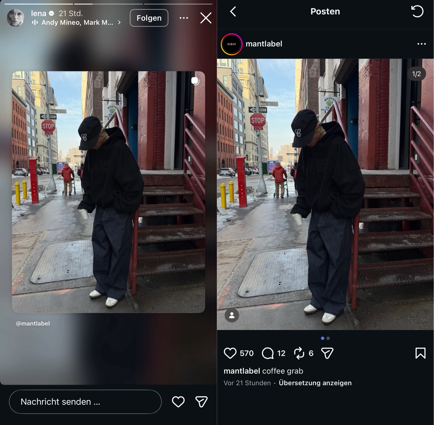 Lena teilt kommentarlos ein Foto (wahrscheinlich des Shootings mit ihrer New Yorker Agentur, worum es ging) in ihre Story. Agentur wird markiert – Werbemarkierung fehlt! Irgendwas Besonderes daran gibt es wahrlich nicht zu sehen, die Frage also immer wieder, die im Raum steht: Warum sollte man eine Lena Mantler (so teuer) sonst buchen, außer wegen irgendwelcher suggerierter Reichweite?! Und die Agenturen sind ein Teil dieses perfiden Spielchens und verdienen prozentual mit an dem Fake!
