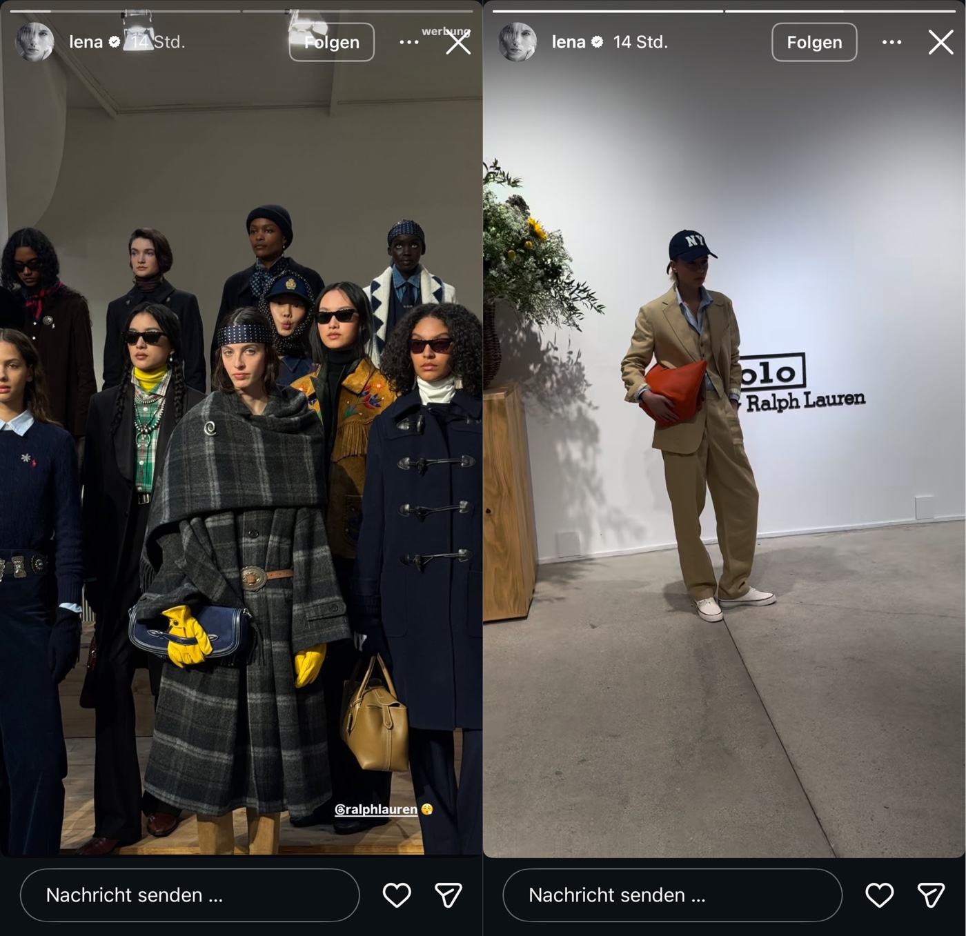 Während es bei den einem Premium Werbepartner einen Flop nach dem anderen gibt – geht es bei Lena munter weiter. Gibt ja genug! Polo Ralph Lauren bspw. … klar, war auch alles bei denen bisher ein Engagement-Flop, aber hey … die Hoffnung stirbt bekanntlich zuletzt. Jedenfalls präsentiert sich die Marke auf der Fashion Week in Paris – da darf unsere Lena, als deren Werbemaskottchen, natürlich auch nicht fehlen. Konversation gibt es selbstverständlich keine dazu, als Lena stumm zwei Storys mit Markenmarkierung postet. Reicht ja auch! Hauptsache auf Kosten anderer Dekadenz ausleben!