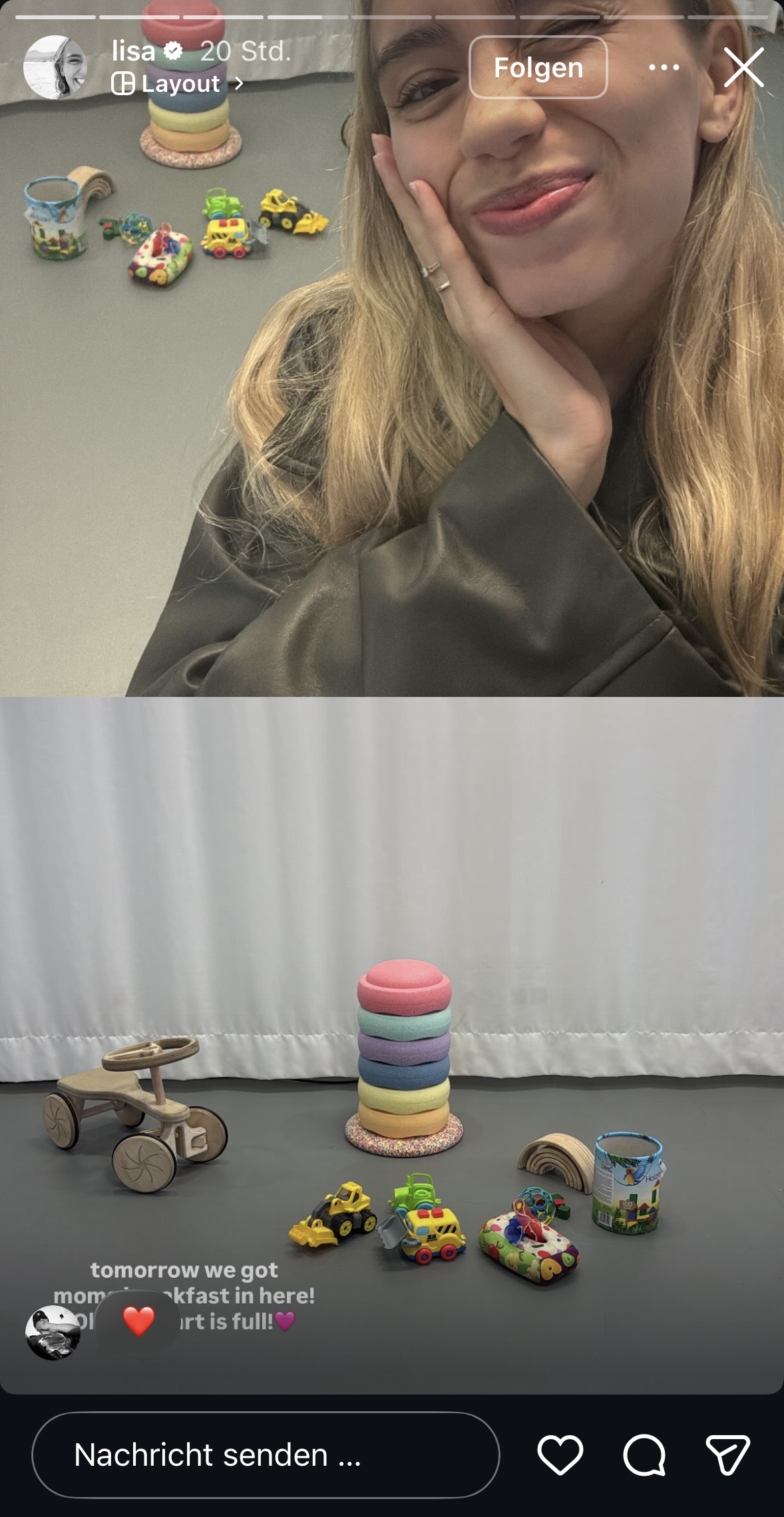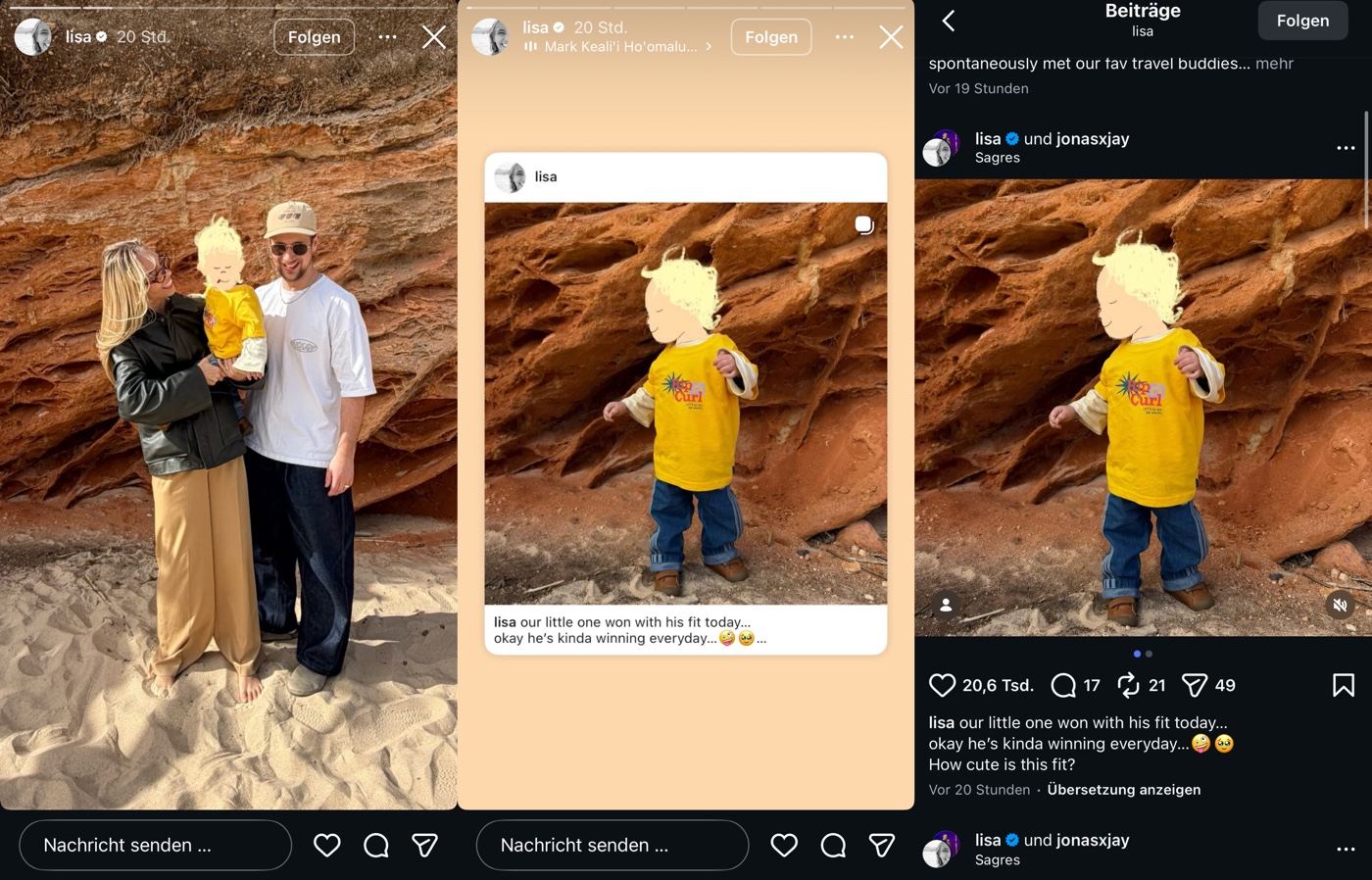 Den Abschluss heute macht dann noch ein neues Collab-Reel von Lisa, Hubby und Lena … wie Lena Baba im Arm hält. Allerlei neue Klamotten und gesponserte Einrichtungsgegenstände sind platziert und irgendwelche Namen verlinkt, die möglicherweise als Inspiration für dieses Meisterwerk an Content gewesen sind – lustig solls wohl auch sein! Gähhhn!