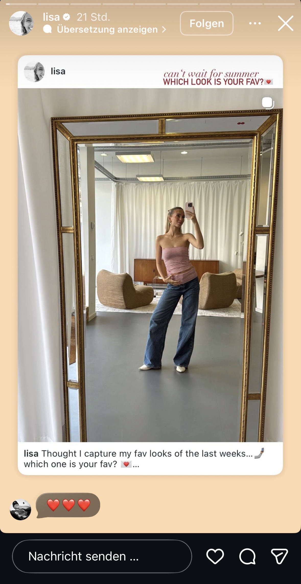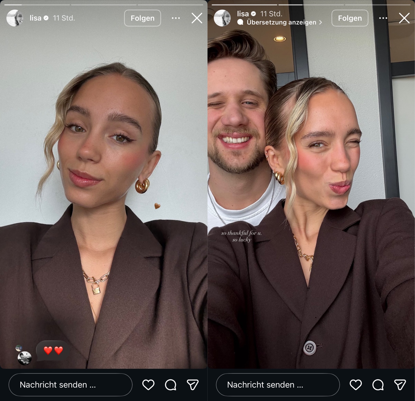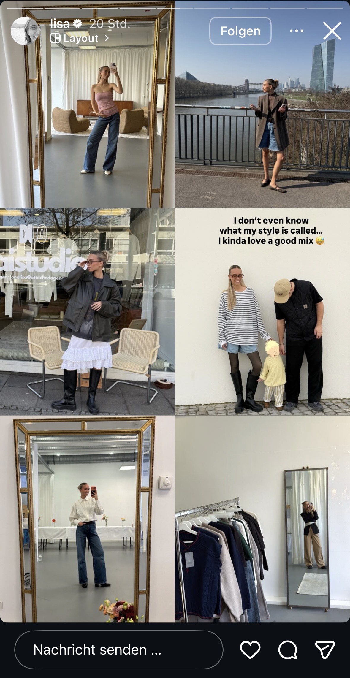 Bei Lisa werden in der Story heute wieder gesponserte Möbel und Klamotten unterschwellig platziert, mit ihren typischen Spiegel-Selfies … dann ihre Kaffeebohnen, als Collab-Reel mit ihrem Kaffee-Buisness – ohne Werbemarkierung – gefolgt von ebenfalls unmarkierte Story-Schleichwerbung für einen Vinted Klamotten Account, welcher verlinkt wird! Im Feed gibts today ein Collab mit Hubby: Wieder andere Klamotten werden da präsentiert und alle Marken in der Caption verlinkt.