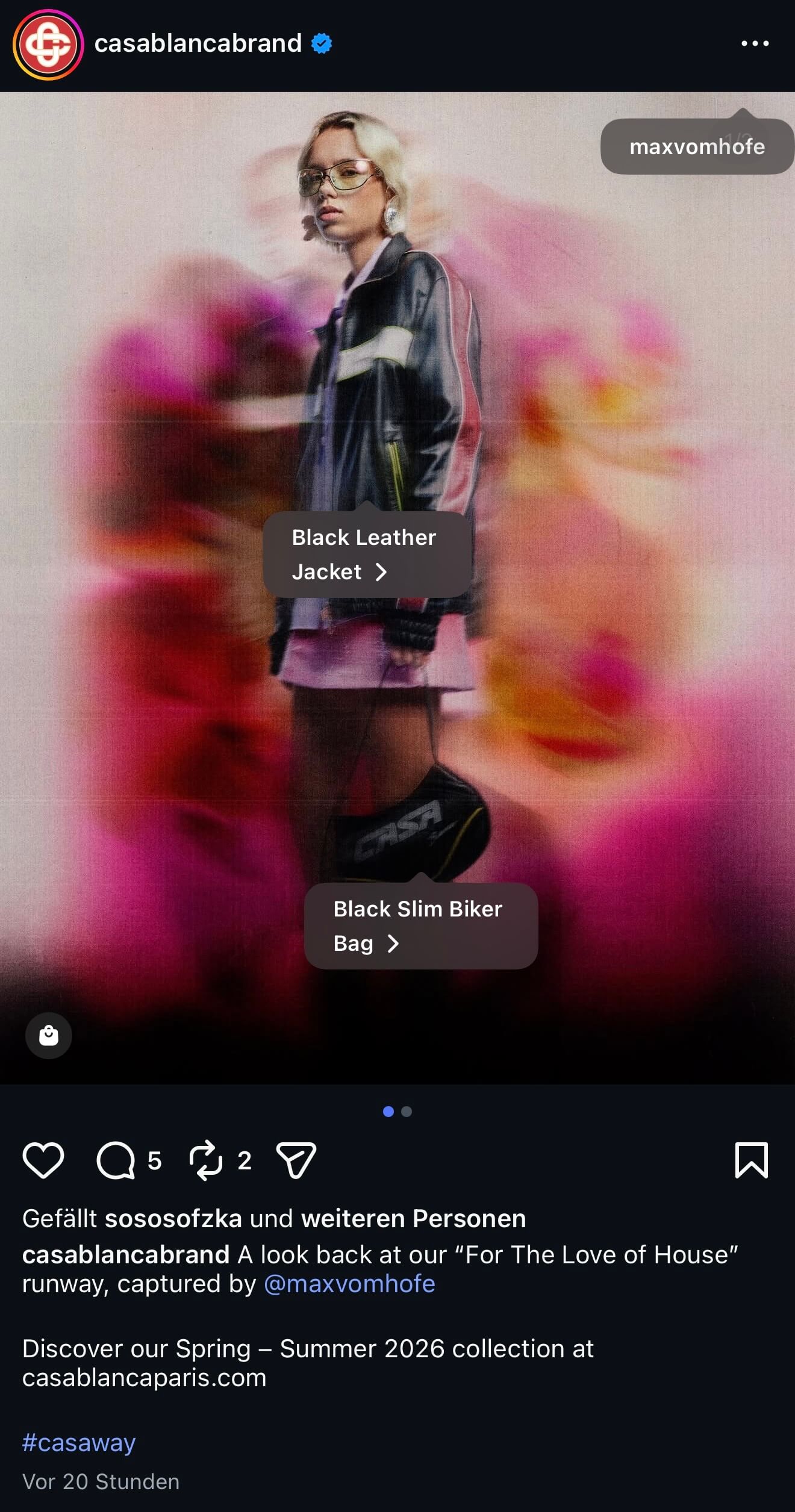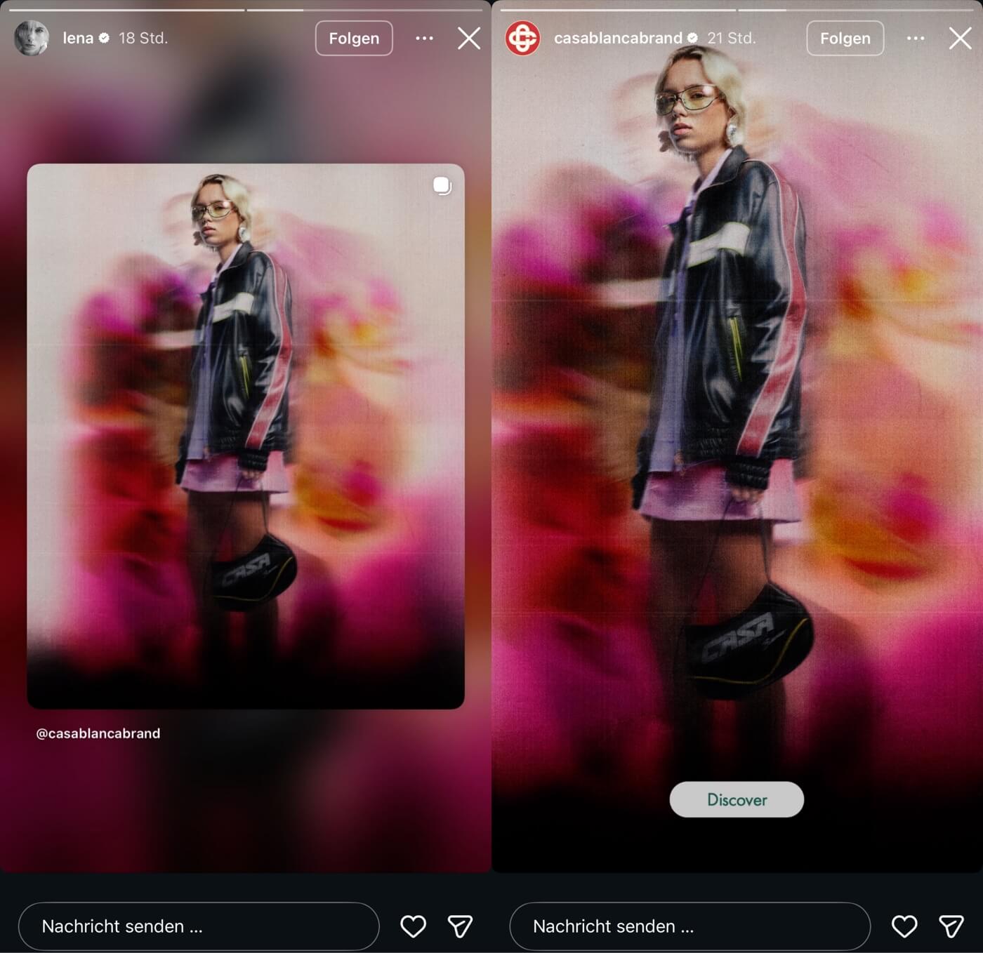 Dienstag! Lena ist wieder da … stumm und kontextfrei zwar, aber ist aktiv. Was für ein Wunder! Sie teilt eine neue Werbe-Kampagne in ihre Story. LOL, was auch sonst! Werbung also, wo wieder eine Werbemarkierung fehlt … und Luxus! Ganz wichtig – Dekadenz und Lena passtdochsogutzusammen! Zu sehen sind da heute nun, neben neuen teuren Klamotten (Nur die Jacke kostet schon 1800 Euro), auch eine Tasche von Casablanca / CASA (700 Euro). Aber Moment mal, die Tasche kennen wir doch schon!? Klar, die hatte Lena nämlich schon letztes Jahr in ihrer Story schleichbeworben und sie wurde auch schon mit der Tasche fotografiert und darauf verlinkt. Jetzt kam wohl der Scheck an für diese Kooperation, deswegen gab es auch nun das stumme Story-Shoutout als Gegenleistung – die Marke repostet auch sofort im Großbild ihr neu gewonnenes Luxus-Megastar-Model. Dass der ganze Käse wieder nix an Engagement für die neu angefütterte Marke bringt, sollte allen hier bereits klar sein!