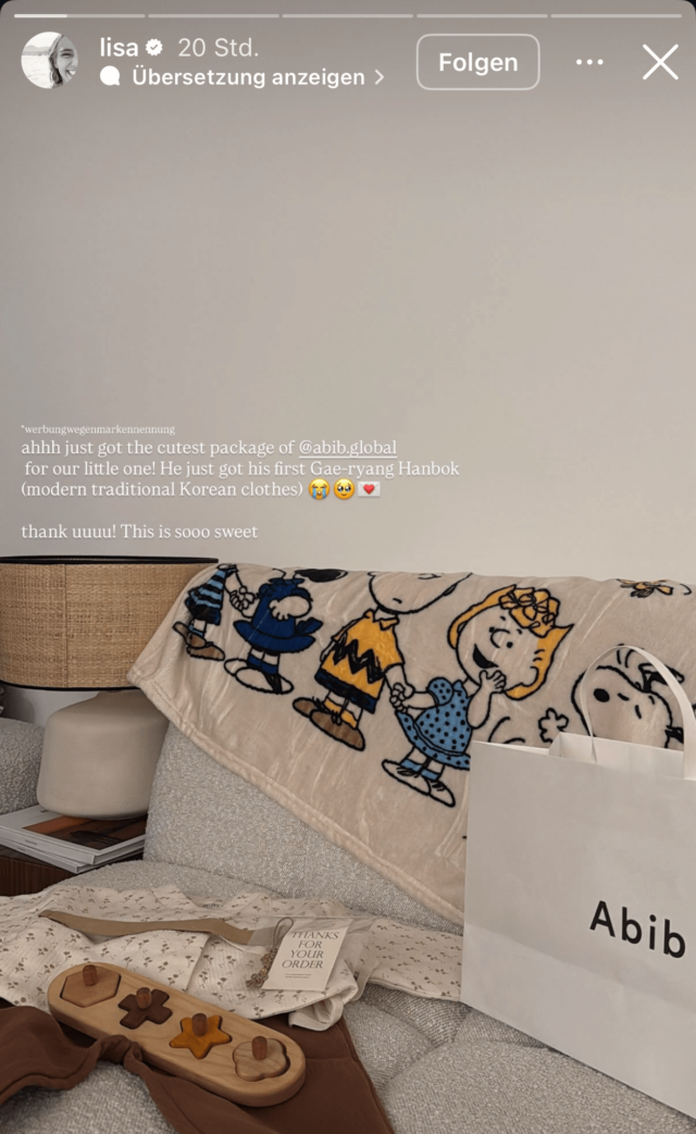 Donnerstag! Bei Lisa wird, in epischer Pose vor dem gesponserten Sofa, der Adventskalender beworben und ein neuer Kaffeebecher gezeigt. Das dort getragene Outfit ist ein verstecktes Placement, auch Schleichwerbung genannt – „Lena´s“ Marke wurde verdeckt markiert und repostet diese Story bei sich auf dem Account. Transparenz ist halt Glückssache!
