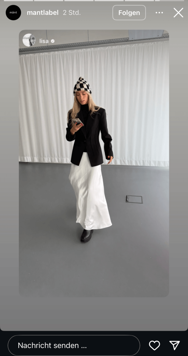 Dienstag! Lisa setzt sich heute eine (albern wirkende) Beanie von „Lena´s“ Marke auf den Kopf und bewirbt ihr Business Nummer 3 „haistudio„. Dass es sich einwandfrei um Schleichwerbung handelt, kann man daran erkennen, dass „Lena´s“ Marke unsichtbar verlinkt wurde, und die Marke ihre Beanie-Story bei sich teilt! Werbetransparenz sieht anders aus – bei Mantlers aber Normalität!