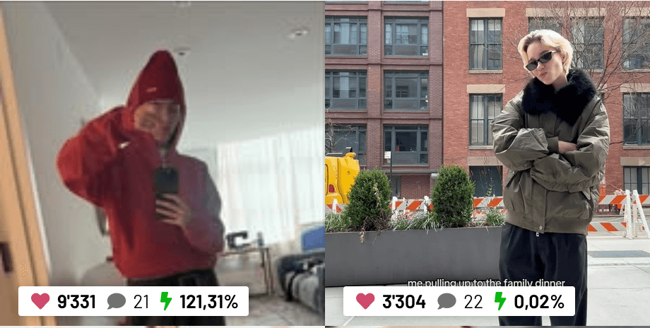 Noch erstaunlicher ist eigentlich nur, dass diese Marken sie trotzdem weiter buchen!? Vielleicht hoffen sie ja jedes Mal aufs Neue auf ein Wunder, oder haben langfristige Verträge abgeschlossen, aus denen sie nicht raus können?! Wenn ich als Agentur wüsste, dass es sowieso bodenlos floppt, würde ich auch die Verträge entsprechend gestalten … zwinker, zwinker. Wie schon mal gesagt: Unmöglich kann die Agentur dies nicht längst selbst gemerkt haben. Da steckt System dahinter! Aber, man weiß es nicht! Der in Lenas Story verlinkte Make-up-Artist Pascal wird sich heute jedenfalls auch fragen, warum sein Shoutout so verpufft. Seine zwei Reels vom Shooting bringen es – trotz Lena Shoutout – auf zusammen gerade einmal 24 (!) Likes. Es ist inzwischen fast schon Comedy. Aber gut: Für uns hier bleibt es immerhin unterhaltsam!