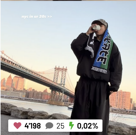 Bei Lena läuft auch wieder stumme Schleichwerbung deluxe – was sonst! Erinnern wir uns kurz an die Luxusuhren-Posse im Sommer. Für den großen Launch wurde der angebliche Megastar extra nach Kyoto eingeflogen – herauskam eine Berichterstattung, die bemerkenswert lustlos und einer Luxusmarke schlicht unwürdig war. Wie dem auch sei, von Lena´s Agentur eingeredet, glauben auch sie, einen reichweitenstarken Superstar vor sich zu haben. Die darauffolgende Bewerbung einer 42.000-Euro-Uhr war dann der erwartete Totalausfall. Likes ausgeblendet, Reaktionen im homöopathischen Bereich, Zielgruppe komplett verfehlt. Lenas Selbstinszenierung ist dermaßen losgelöst von Realität und Kontext, dass man sich fragt, für wen das eigentlich gedacht war – außer fürs eigene Konto. Gepostet im Oktober, kümmerlich kommentiert hauptsächlich von Agenturpersonal und ein paar verwirrten Gestalten. Jede Interaktion zählt!