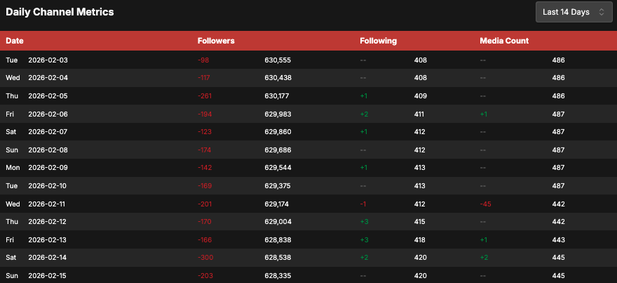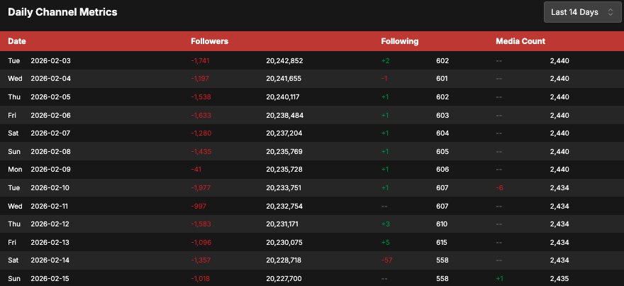 Donnerstag! Der urplötzliche Follower-Boom der letzten Woche ist bei Lena genauso urplötzlich wieder ins Minus umgeschlagen … 700 Verluste sind gestern zu beklagen! LOL! Bei der inaktiven Lisa hingegen, rollt die Follower-Bot-Maschine noch weiter – sie will, trotz Inaktivität seit 2 Tagen, gestern noch 300 Follower akquiriert haben!