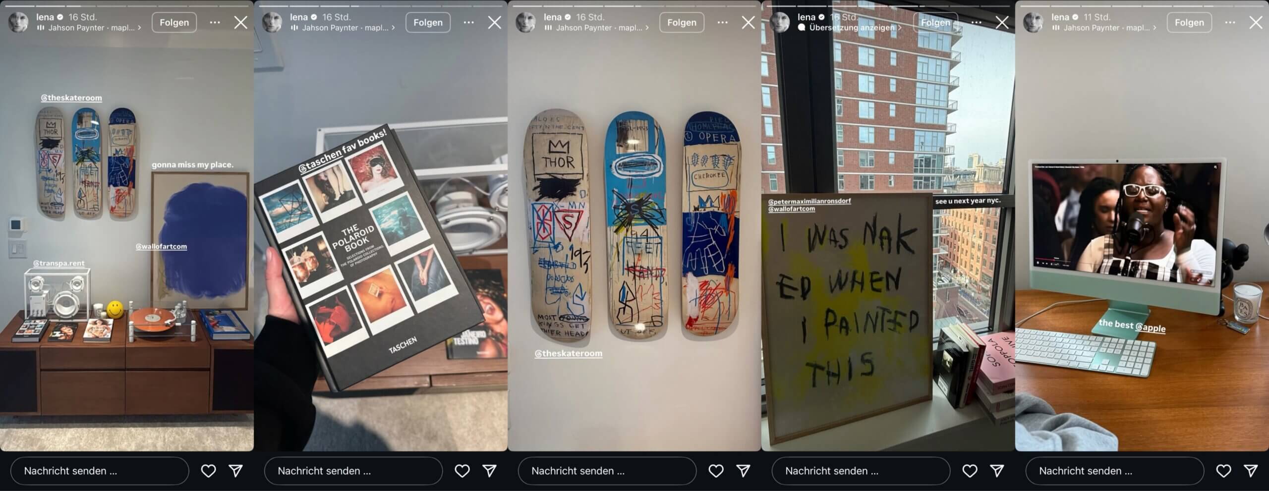Am Donnerstag geht es weiter mit Schleichwerbung … stumm und kontextfrei, aber mit Markenverlinkungen wird jeder gesponserte Krempel bei Lena beworben – ohne jede Werbekennzeichnung! Sie fährt das volle Programm auf: Skateboard Decks, Technik, Bücher und ihre eigene Marke – insgesamt 7 Storys Schleichwerbung!
