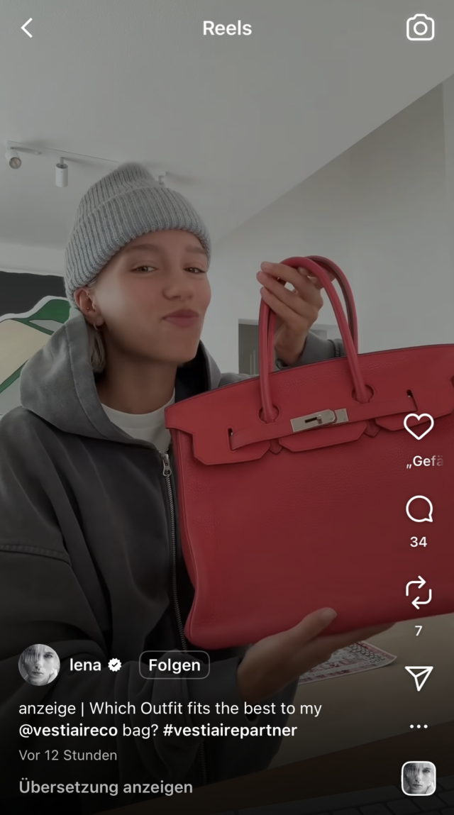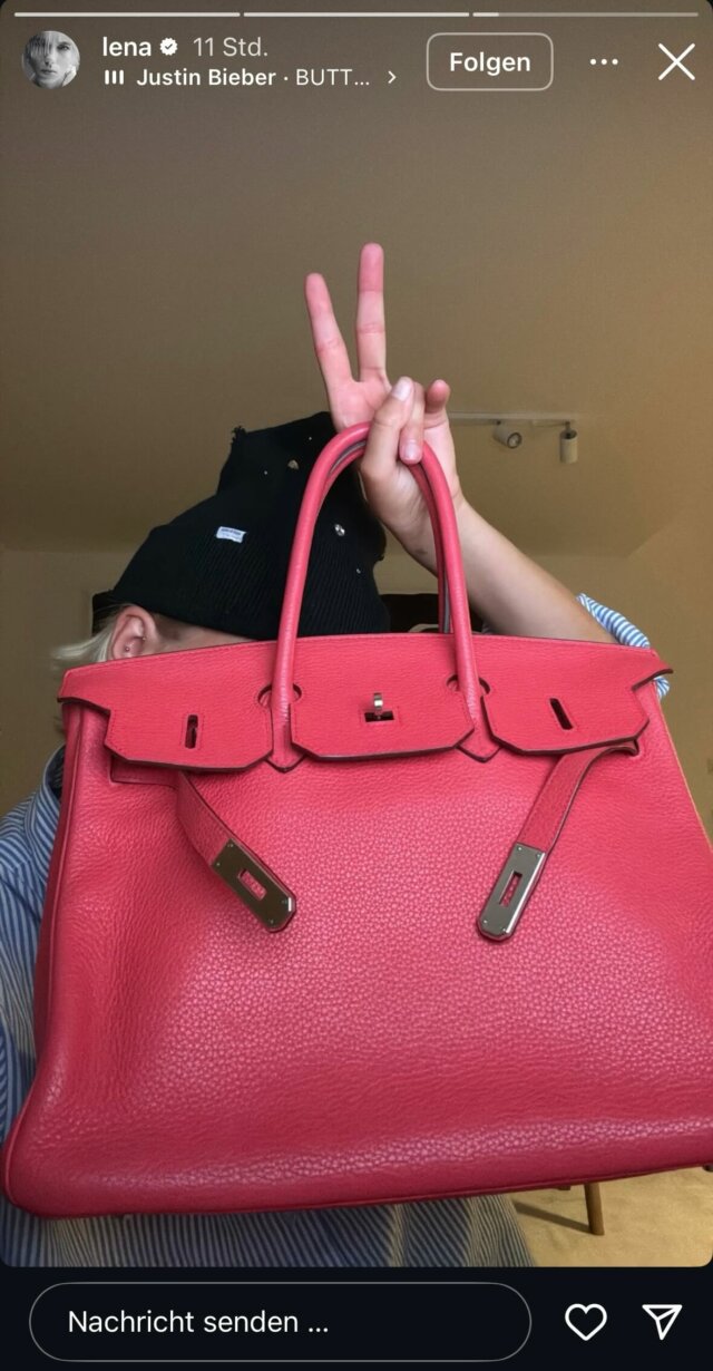 Die rote Tasche ist zurück! Ja, genau die, die vor zwei Wochen schon mal stumm in die Kamera gehalten und als Schleichwerbung heimlich untergeschoben wurde. Gleiches Foto ist nun das Reel-Startbild, was dies übrigens eindeutig als Schleichwerbung damals deklariert! Heute also das große Comeback aus dem gesponserten Wohnzimmer und mit Markenverlinkung von Vestaireco. Dass Lena auch diesmal den Kontakt zur Realität (aka ihrer Community) komplett verloren hat, merkt man sofort, wenn man sich ihr künstlich aufgesetztes Geschwafel mal anhört. Es geht um Luxus-Produkte, was sonst! Nebenbei bemerkt, kostet dieses Täschchen schlappe 13.300 Euro! Wie man sich als völlig abgehobener Influencer solch ein Schätzchen gönnt, wird uns dann in einem Reel vorgeführt – garniert mit der charmanten Frage an ihre Fans Bots, was man sich passend zum dekadenten Accessoire sonst noch sündhaft Teures aus dem Shop gönnen sollte. Maximal gringe und unangemessen.