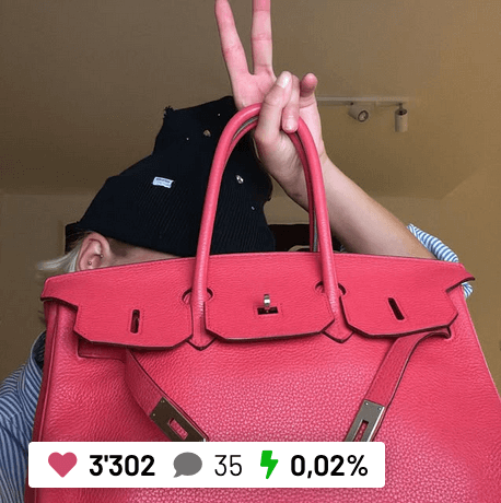 Am Dienstag können wir die erste Bilanz unserer Dauerwerbe-Influencer bestaunen. Selbstverständlich floppt auch das nunmehr 6. Posting auf dem Account der neuen aufstrebenden Modemarke bodenlos. 16 (!) Kommentare gibt es da zu bestaunen, 7 davon von der Marke selbst! Läuft! Genauso „erfolgreich“ läuft ihre 13.000 Euro-Taschen-Bewerbung. Das Millionen-Publikum wertschätzt ihr dekadentes Machwerk mit 34 (!) Kommentaren … über 10 davon von Lena selbst – ihr Kumpel Luca kommentiert sogar 2x, damit Lena 2x antworten kann. Heute verliert sie – nebenbei bemerkt – knapp 18.000 Follower! Was für ein jämmerlicher SCAM!