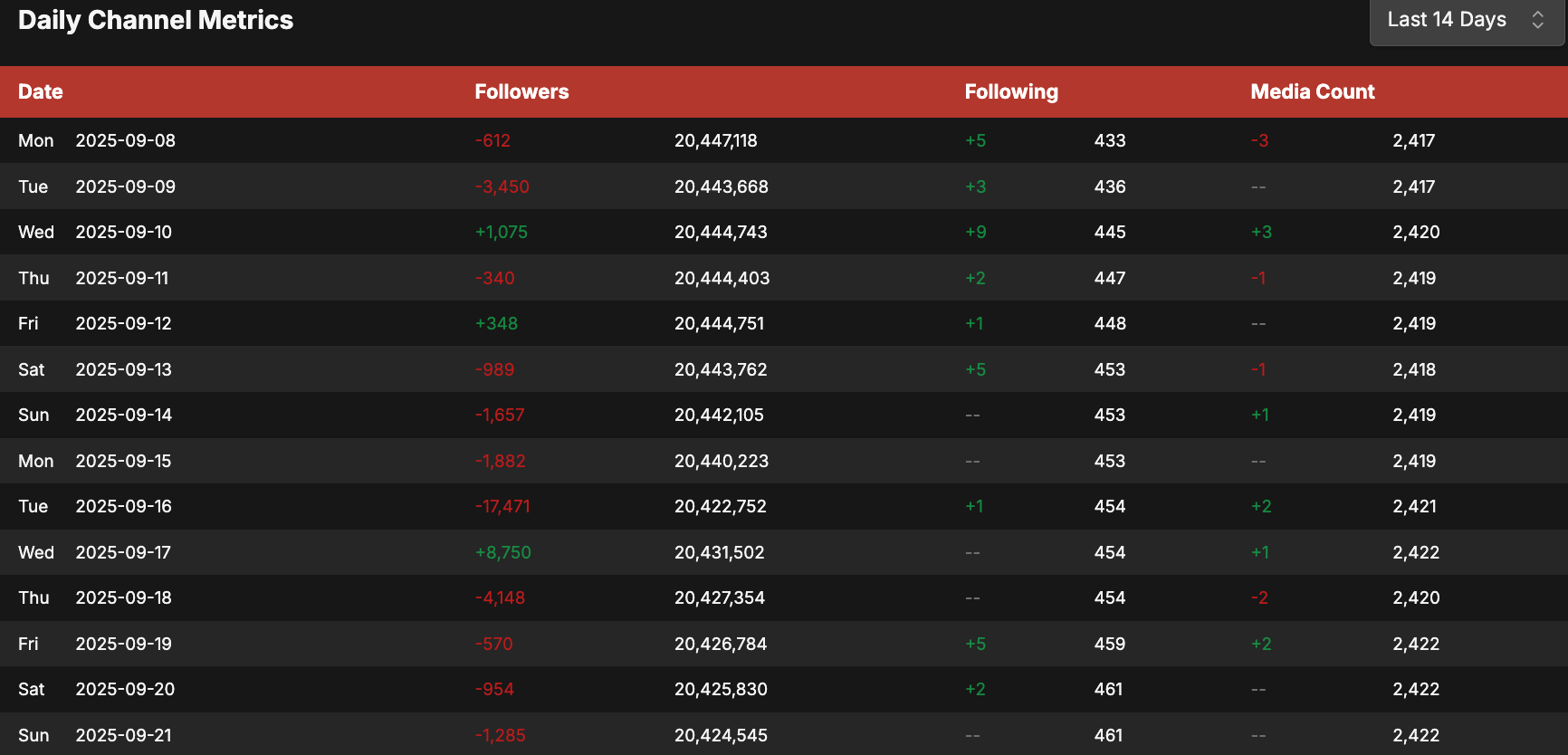 Die Postings sind mittlerweile übrigens alle 2-3 Tage alt … heute posten sie nochmal 3 neue Lena Postings dazu! LOL! Überlegt mal, zusammen hat der Produktionsaufwand und die Reise & Hotelkosten und Gagen unseres Megastars mit Sicherheit Unsummen an Werbe-Budget gekostet … für was?! Ein Hauch von heißer Luft! Lena hatte sich ja am Mittwoch aus dem Nichts heraus knapp 9000 Follower gegönnt, nachdem ihr am Dienstag knapp 17.500 entfleucht waren, hilft aber trotzdem nichts: 17.500 Follower minus ist das Wochenfazit! Fake bleibt halt eben Fake (Quelle: Socialblade).